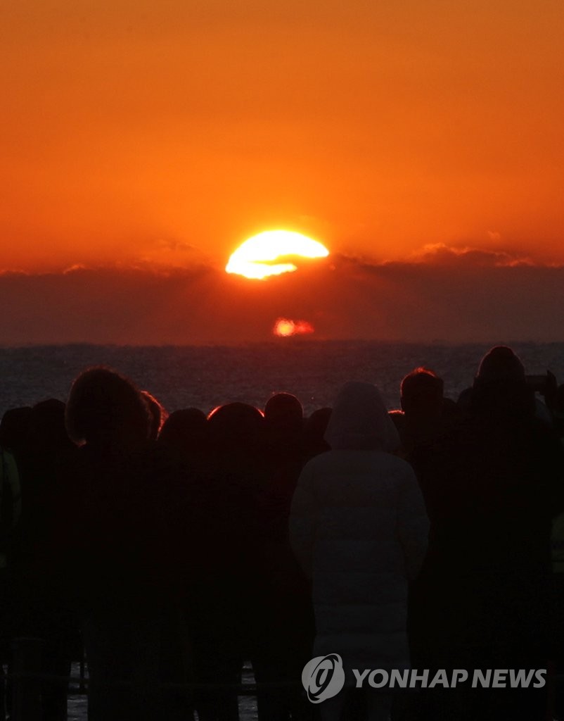 | ▲ 모습 드러낸 2022년 첫 해 (울산=연합뉴스) 김용태 기자 = 1일 오전 한반도 육지에서 새해 가장 먼저 일출을 볼 수 있는 울산시 울주군 간절곶에서 2022년 첫 해가 뜨고 있다. 2022.1.1 yongtae@yna.co.kr |