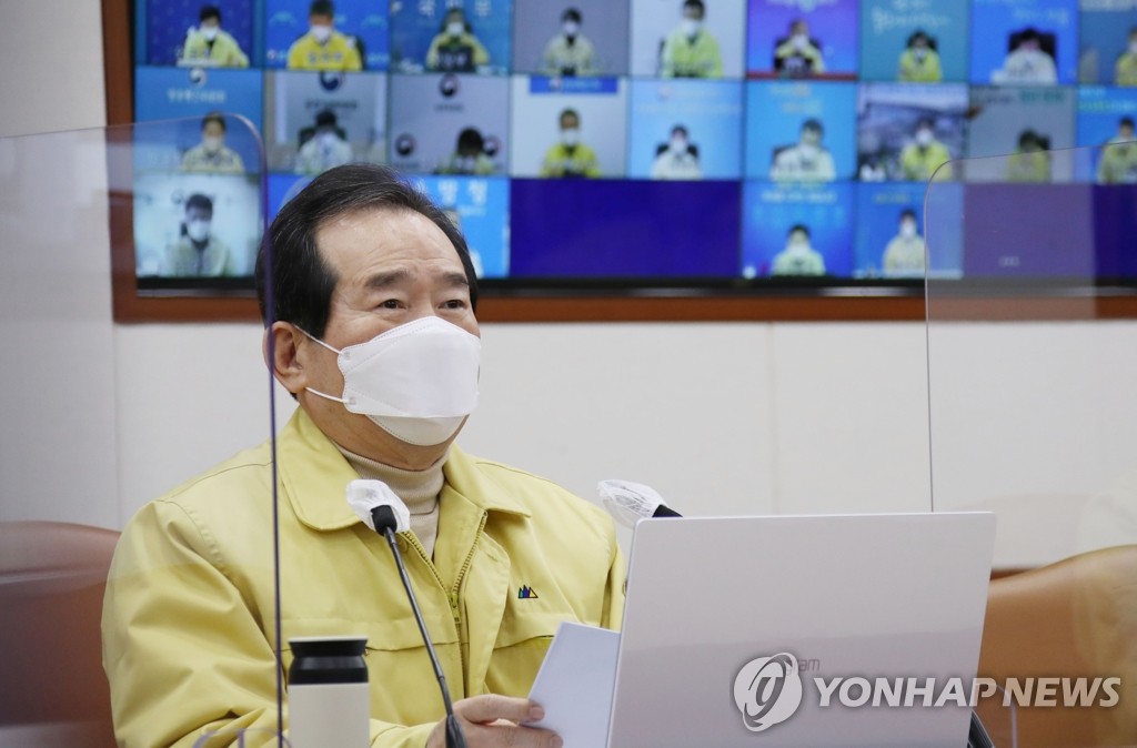 | ▲ Prime Minister Chung Sye-kyun holds a government virus response meeting at the government complex in Seoul on Jan. 24, 2021. (Yonhap) |