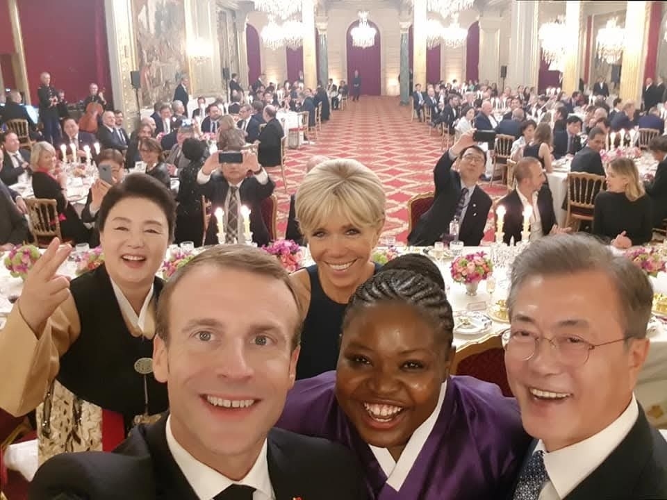 | ▲ 2018년 한·프랑스 정상 만찬서 공연하고 양국 정상 내외와 '셀카' [로르 제공. 재판매 및 DB 금지] |