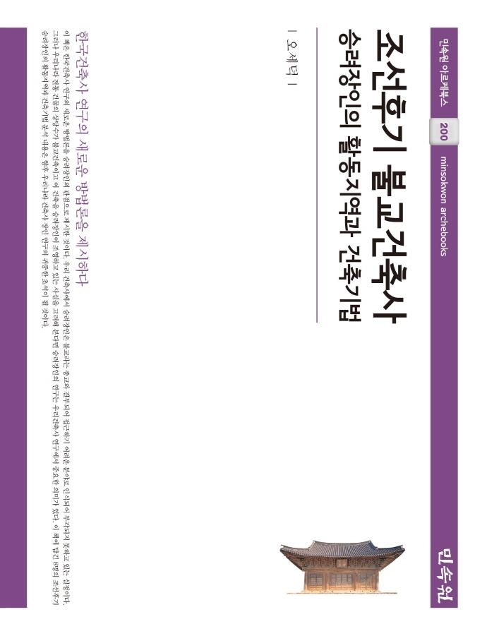 불교건축사를 연구하는 오세덕 경주대 교수가 조선시대 후기인 17∼19세기 사찰 건축에 관여한 승려 장인을 조명하고, 그들이 지은 건축물을 논했다.