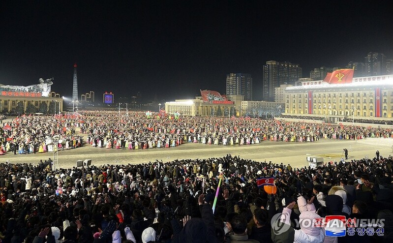 | ▲ This file photo, carried by North Korea's official Korean Central News Agency on Jan. 1, 2025, shows the North holding a youth's nighttime outdoor celebration at Kim Il Sung Square on Dec. 31, 2024 to usher in the new year. (For Use Only in the Republic of Korea. No Redistribution) (Yonhap) |