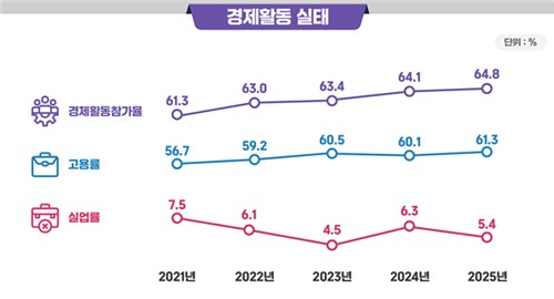 During the same period, their jobless rate fell 0.9 percentage point on-year to 5.4 percent, while their economic participation rate increased 0.7 percent point compared with 64.8 percent the previous year.