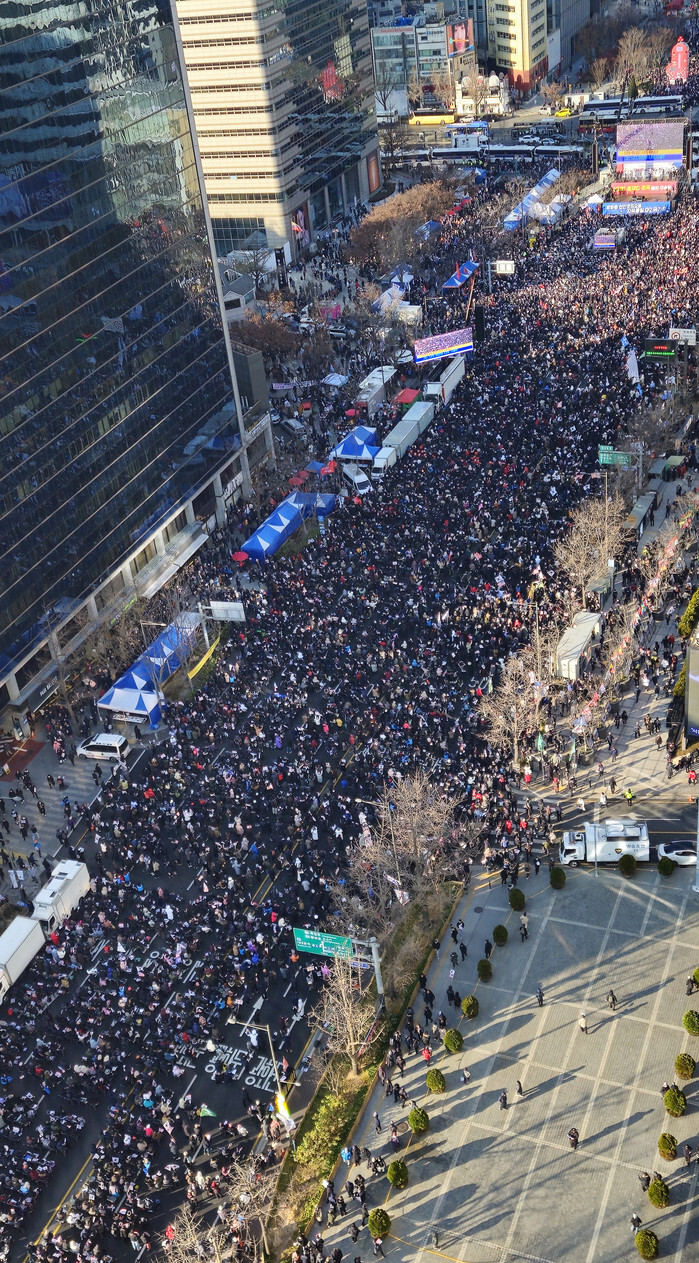 Protesters from conservative groups attend a rally opposing the impeachment of President Yoon Suk Yeol near Gwanghwamun Square in central Seoul on Dec. 14, 2024. (Yonhap)