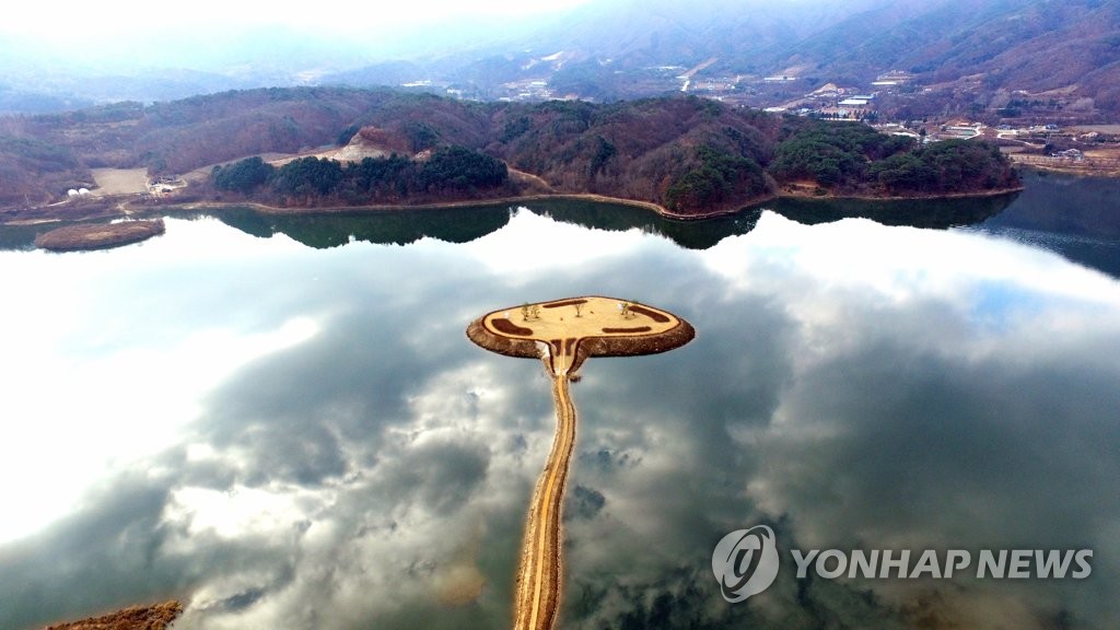 (화천=연합뉴스) 이상학 기자 = 강원 화천군이 파로호 트레킹 코스를 조성하면서 인공섬을 만들었다.