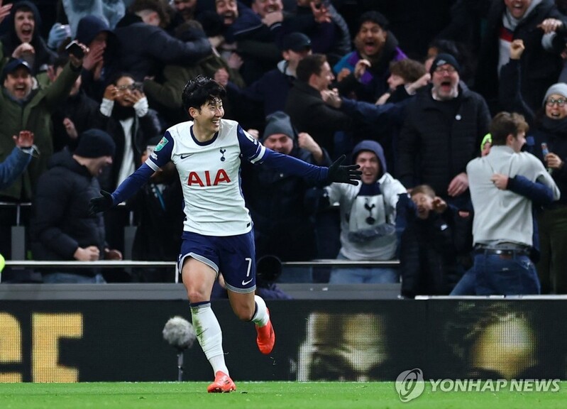 손흥민은 20일(한국시간) 영국 런던의 토트넘 홋스퍼 스타디움에서 열린 맨체스터 유나이티드(맨유)와의 2024-2025 카라바오컵(리그컵) 8강전에서 토트넘의 왼쪽 날개로 선발 출전해 3-2로 쫓기던 후반 43분 '코너킥 다이렉트 득점'으로 골 맛을 봤다.