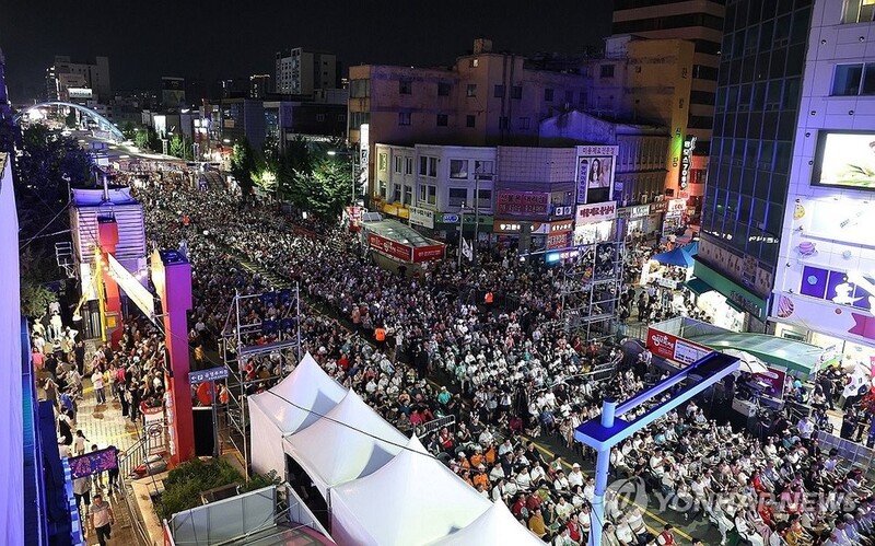 ▲ 대전 0시 축제 개막 (대전=연합뉴스) 대전지역 대표 축제인 '대전 0시 축제'가 지난 9일 개막했다. 0시 축제는 9일 일정으로 중앙로 일원에서 열린다. 사진은 축제 개막식 모습. 2024.8.10 [대전시 제공. 재판매 및 DB 금지] |