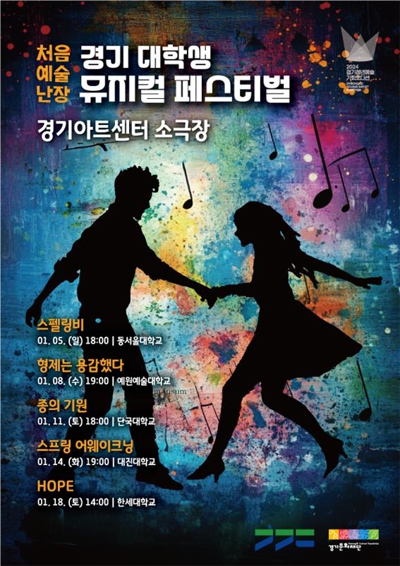 (수원=연합뉴스) 김솔 기자 = 경기문화재단은 내년 1월 5∼18일 수원시 경기아트센터 소극장에서 '경기 대학생 뮤지컬 페스티벌'을 개최한다고 27일 밝혔다.