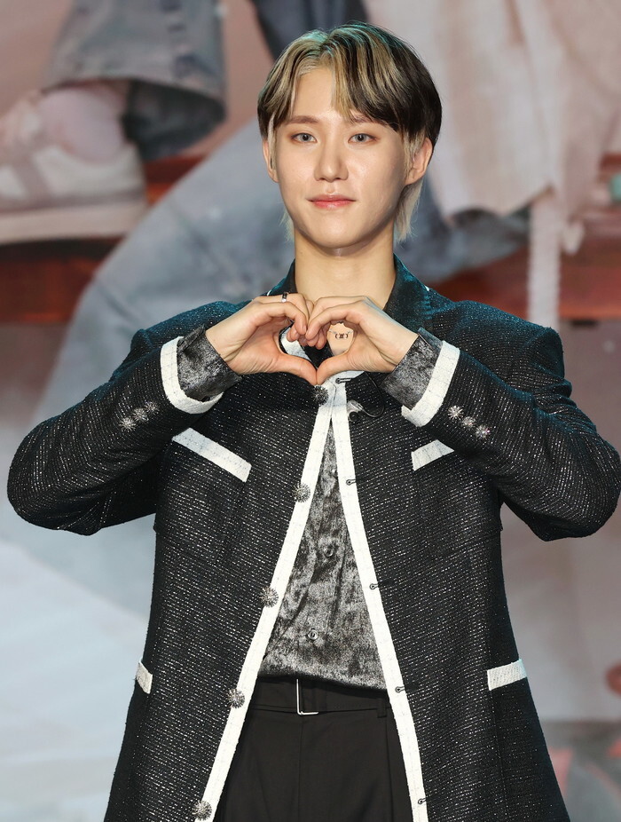 Kyle, a member of South Korean boy group ASC2NT, poses for a photo during a showcase for the group's first single album "Expecting Tomorrow" in Seoul on May 7, 2024. (Yonhap)