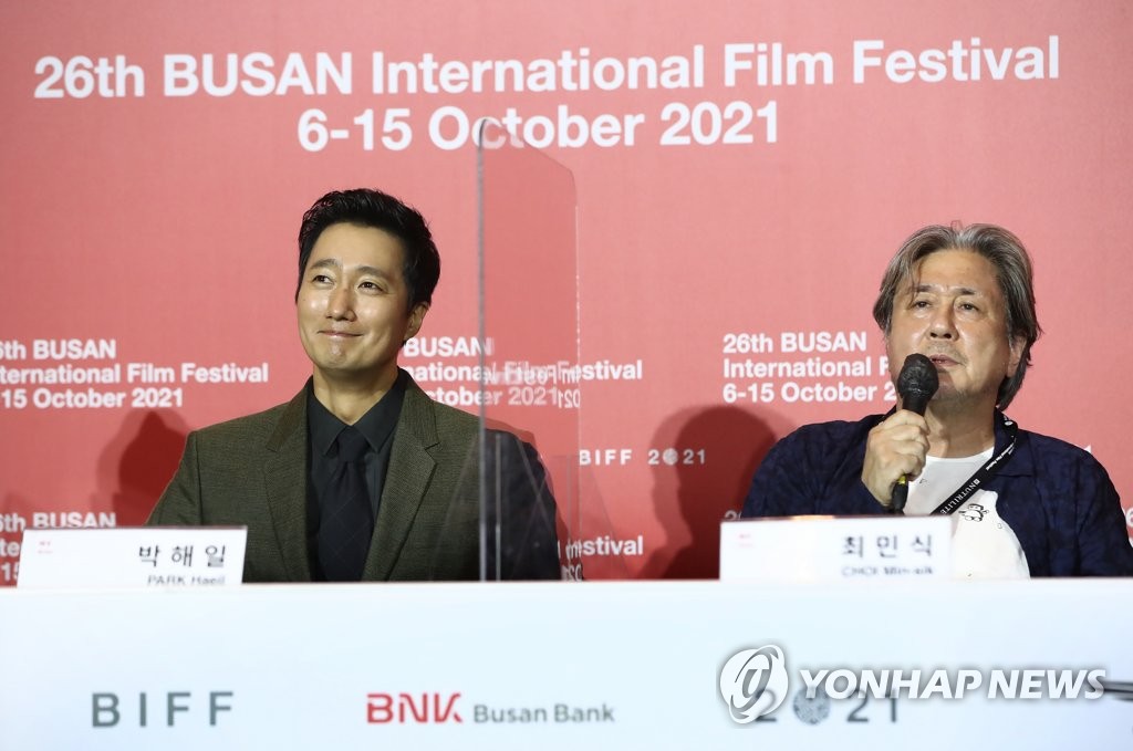 | ▲ '행복의 나라로' 주연맡은 최민식-박해일 (부산=연합뉴스) 진연수 기자 = 배우 최민식(오른쪽)과 박해일이 6일 오후 부산 해운대구 영화의전당 중극장에서 열린 제26회 부산국제영화제(BIFF) 개막작 '행복의 나라로' 기자회견에서 질문에 답변하고 있다. 2021.10.6 jin90@yna.co.kr |