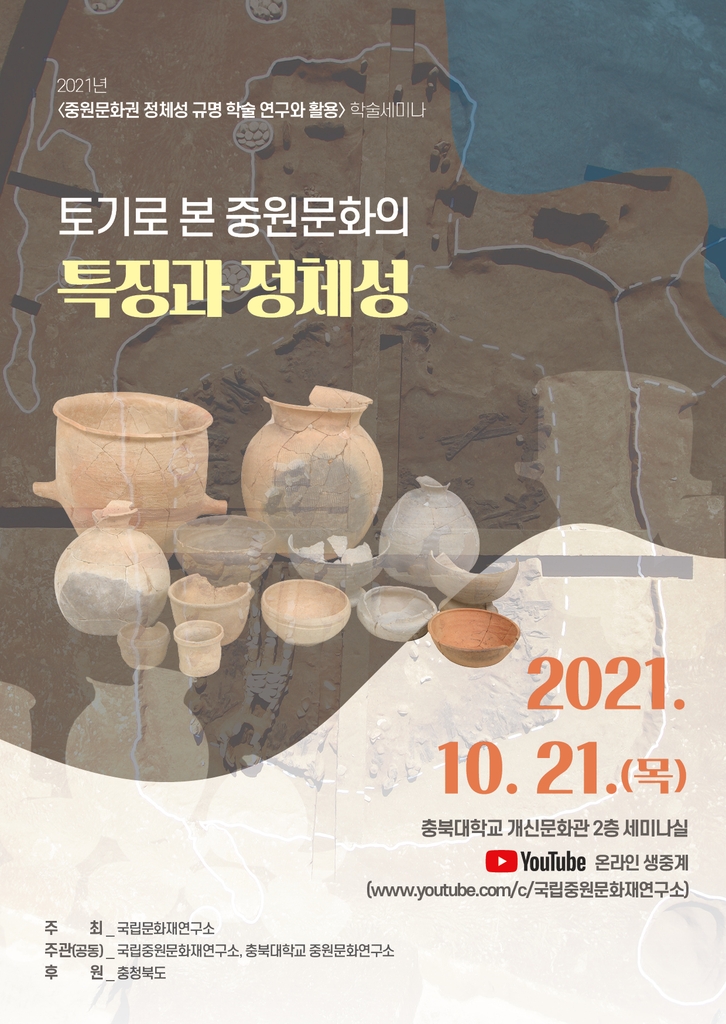 충북대 중원문화연구소가 함께 여는 세미나에서는 고대에 각국이 한반도 중심부인 중원으로 진출하는 과정에서 나타난 토기들의 양상과 특징을 고찰한다.