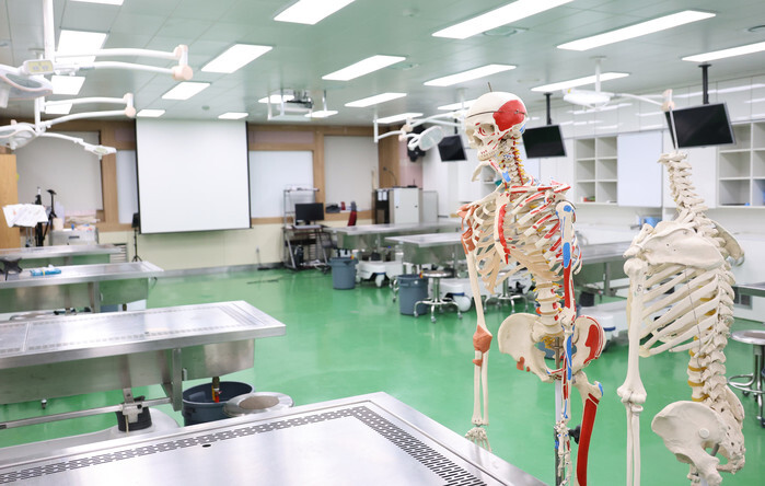An anatomy lab at a university hospital in Cheongju, 112 kilometers southeast of Seoul, remains vacant on March 25, 2024, amid a walkout by some 13,000 trainee doctors, now in itsfifth week, in protest against the government's decision to increase the number of medical students by 2,000. (Yonhap)