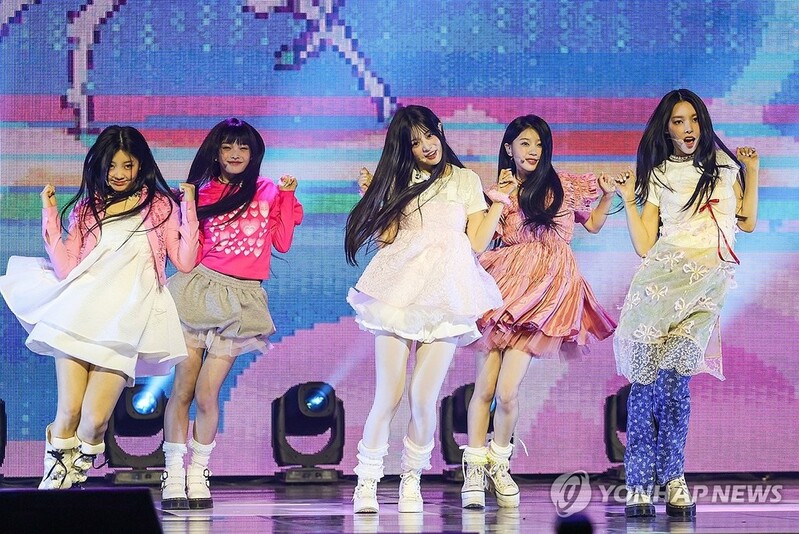 ▲ '하이브 막내딸' 아일릿, 데뷔 쇼케이스 (서울=연합뉴스) 류효림 기자 = 신인 그룹 아일릿이 25일 서울 용산구 한남동 블루스퀘어에서 열린 데뷔 쇼케이스에서 첫 미니앨범 'SUPER REAL ME'의 타이틀곡 'Magnetic' 무대를 선보이고 있다. 2024.3.25 ryousanta@yna.co.kr |