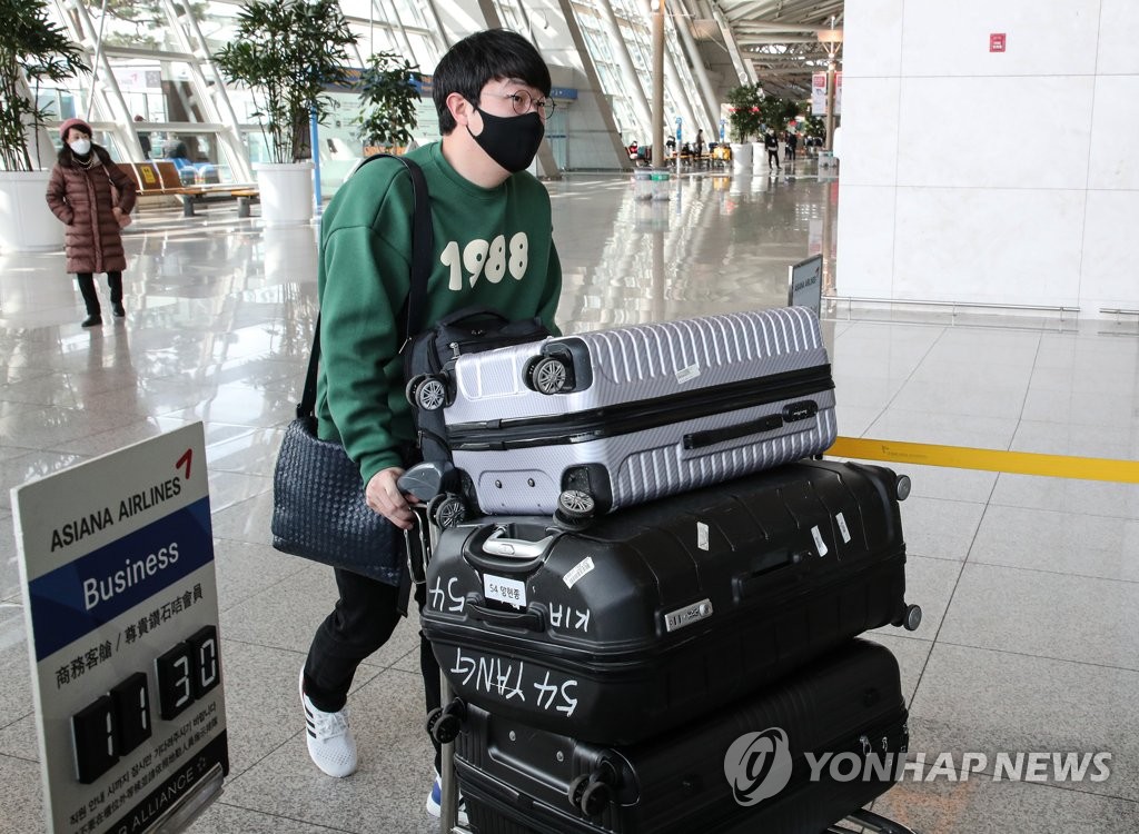 ▲ Yang Hyeon-jong of the Texas Rangers carries his luggage at Incheon International Airport in Incheon, just west of Seoul, on Feb. 20, 2021, before departing for the United States to join the club's spring training. (Yonhap)