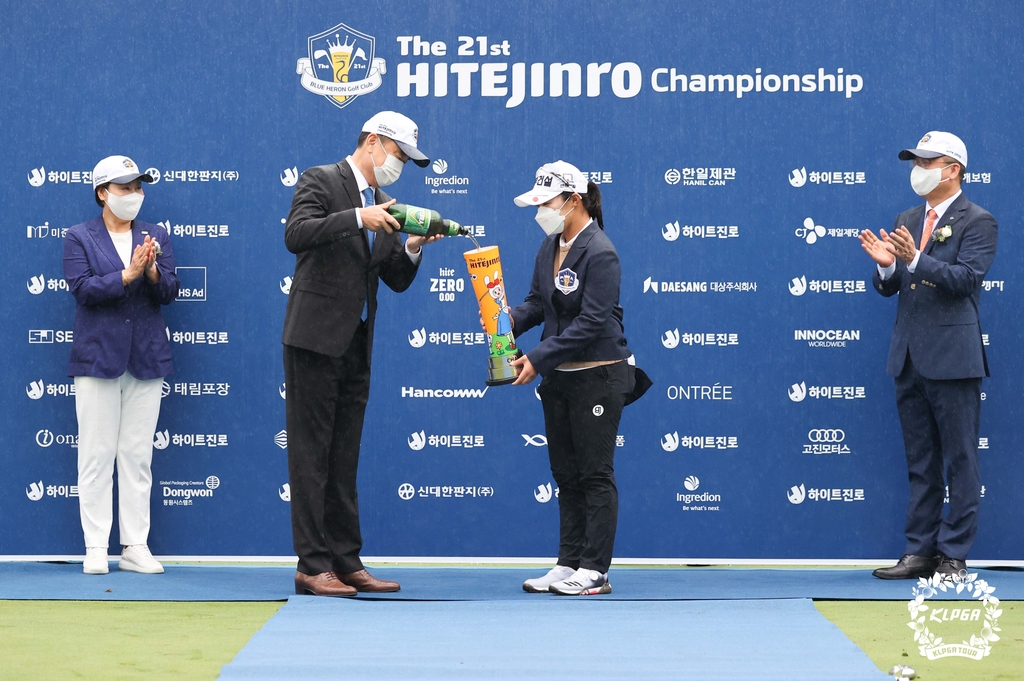 | ▲ 우승 트로피에 맥주를 따르는 세리머니. [KLPGA 제공. 재판매 및 DB 금지] |