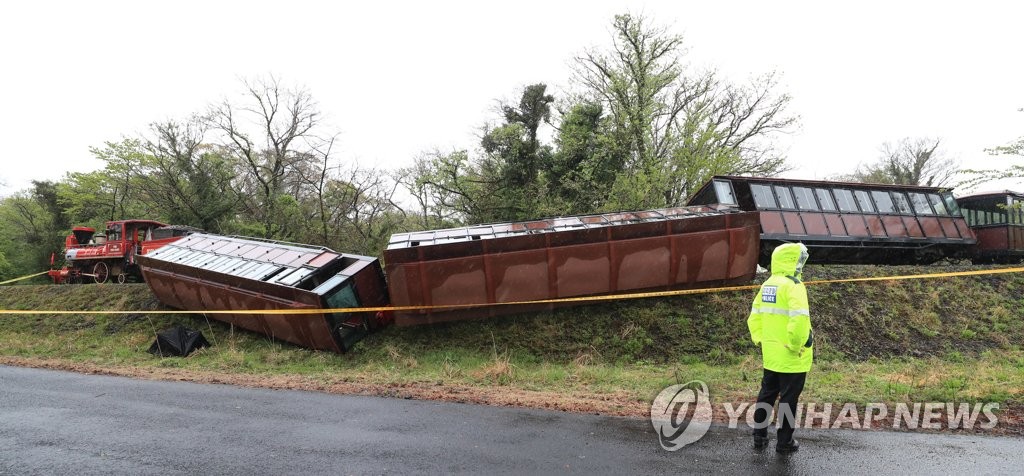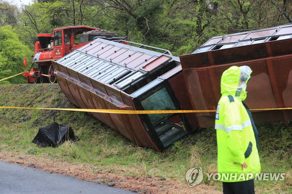 (제주=연합뉴스) 박지호 고성식 기자 = 제주의 한 사설 관광지에서 자칫 대형 사고로 이어질 뻔한 관광 기차 전도 사고가 발생해 관광체험시설에 대한 철저한 안전관리가 요구되고 있다.