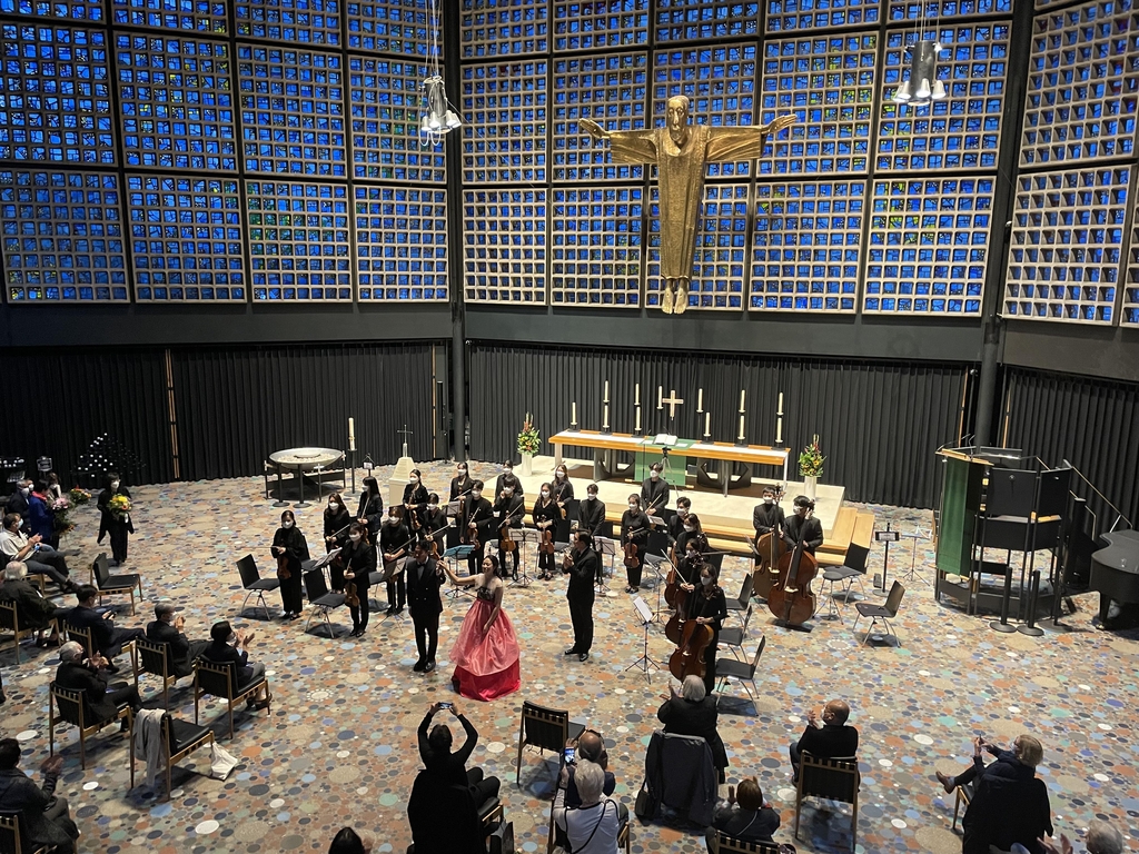독일 통일 31주년을 맞아 1일(현지시간) 베를린 중심가의 평화 상징 빌헬름황제 추모교회에서 한반도 평화를 기원하는 음악회가 열렸다.