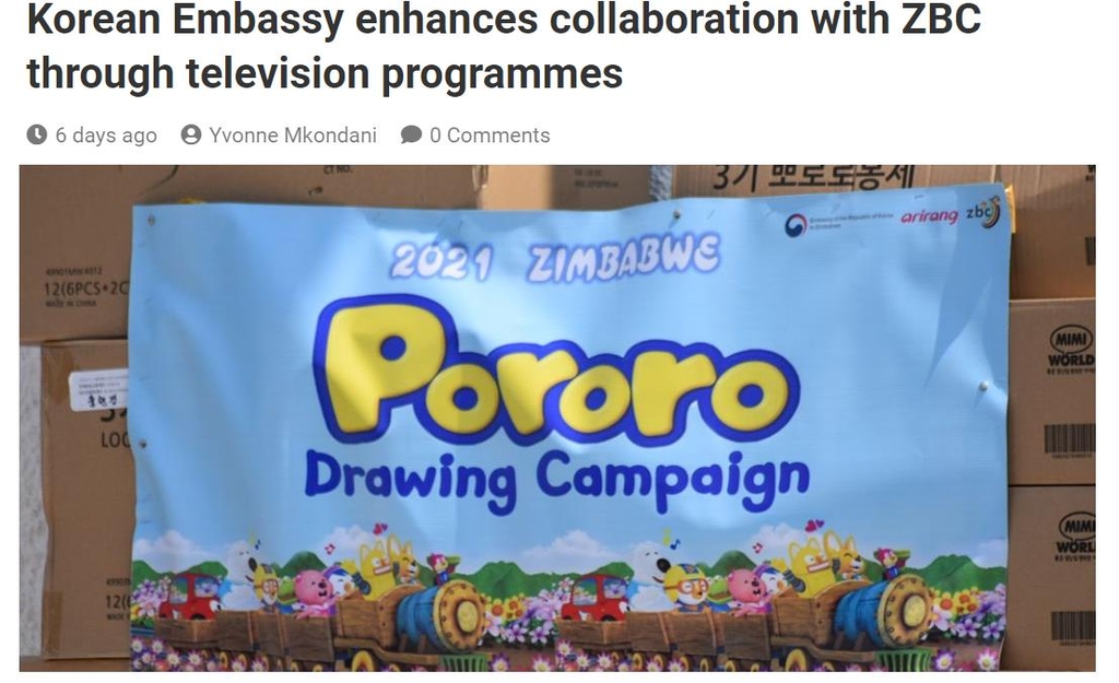 | ▲ 한국대사관과 짐바브웨 ZBC 방송이 개최하는 뽀로로 그리기 대회 [ZBC 방송 보도 캡처, 재판매 및 DB 금지] |