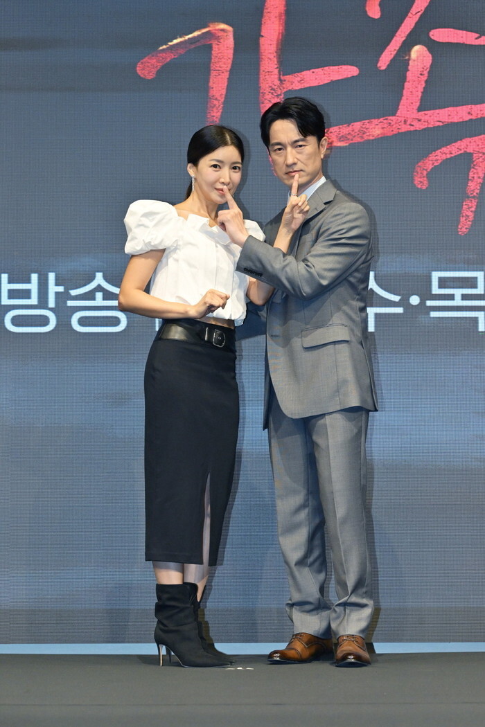 This photo, provided by KBS on Aug. 14, 2024, shows South Korean actor Kim Byung-chul and actress Yoon Sae-ah, who star in the new drama "Perfect Family." The first episode of the drama will be aired by the KBS TV network the same day. (PHOTO NOT FOR SALE) (Yonhap)