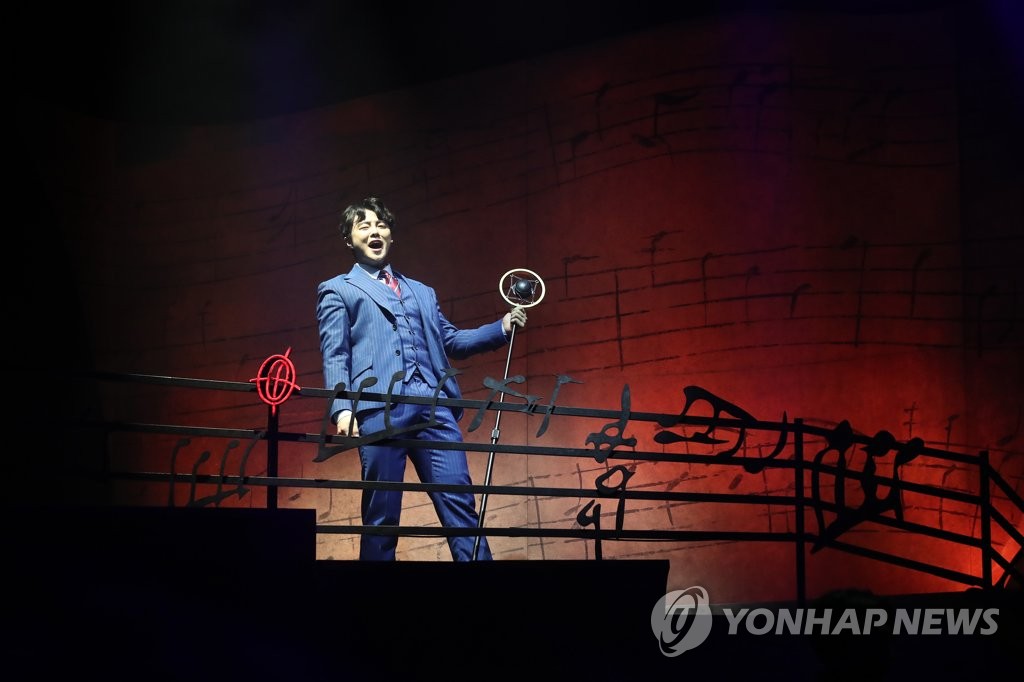 | ▲ 신중현의 명곡 '미인' (서울=연합뉴스) 강민지 기자 = 23일 오후 서울 종로구 예스24스테이지에서 열린 뮤지컬 '미인'프레스콜에서 배우 조성윤이 하이라이트 장면을 시연하고 있다. 2021.9.23 mjkang@yna.co.kr |
