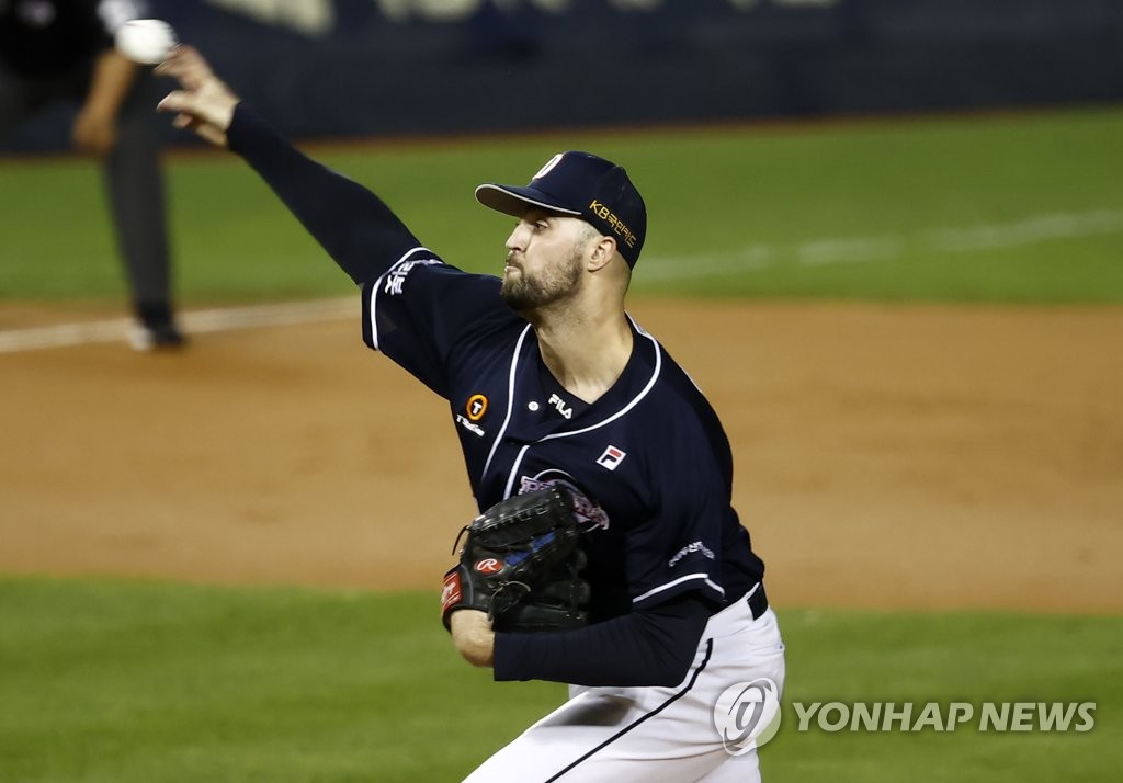 ▲ In this file photo from Sept. 30, 2021, Walker Lockett of the Doosan Bears pitches against the LG Twins in the bottom of the first inning of a Korea Baseball Organization regular season game at Jamsil Baseball Stadium in Seoul. (Yonhap)