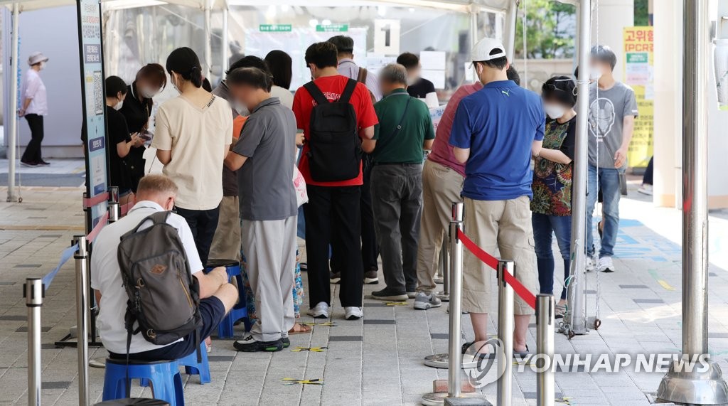 | ▲ 코로나19 전자문진표 작성하는 시민들 (서울=연합뉴스) 김인철 기자 = 코로나19 신규확진자가 9만9327명으로 다시 10만명에 근접한 26일 오전 서울 마포구보건소 코로나19 선별진료소에서 검사를 받으려는 시민들이 전자문진표를 작성하고 있다. 2022.7.26 yatoya@yna.co.kr |