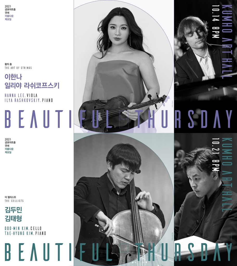 ▲ 이한나-김두민 '아름다운 목요일' = 비올리스트 이한나와 첼리스트 김두민이 각각 다음 달 14일과 21일 오후 8시 서대문구 금호아트홀 연세에서 열리는 기획공연 '아름다운 목요일' 무대에 오른다.