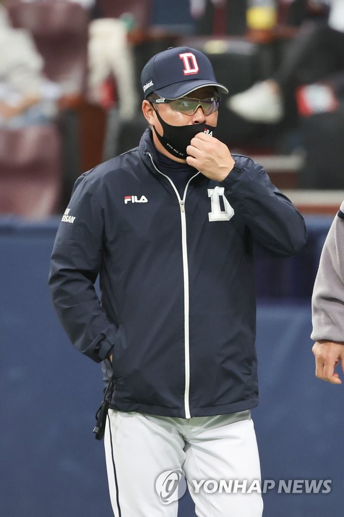 First baseman Yang Suk-hwan, batting only .194 (7-for-36) in eight postseason games, went down from fifth to sixth in the lineup. Kang Seung-ho, who had two hits from the No. 8 spot in Game 1 and is batting .400 (12-for-30) this month, will bat second on Monday.