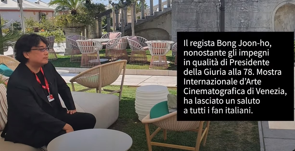 봉준호 감독의 영상 메시지 촬영은 1∼11일 열린 제78회 베네치아 국제영화제를 계기로 주이탈리아 한국문화원의 요청에 따라 이뤄졌다. 봉 감독은 한국 영화임으로는 사상 처음으로 이 영화제 심사위원장으로 활약했다.