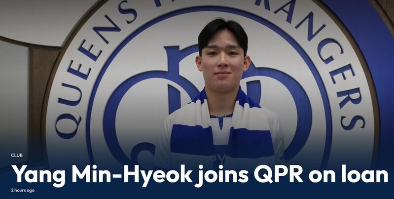 QPR은 29일(현지시간) 구단 홈페이지를 통해 "양민혁의 임대 이적이 확정됐다. 양민혁은 남은 2024-2025시즌을 우리 팀에서 보낸다"고 발표했다.