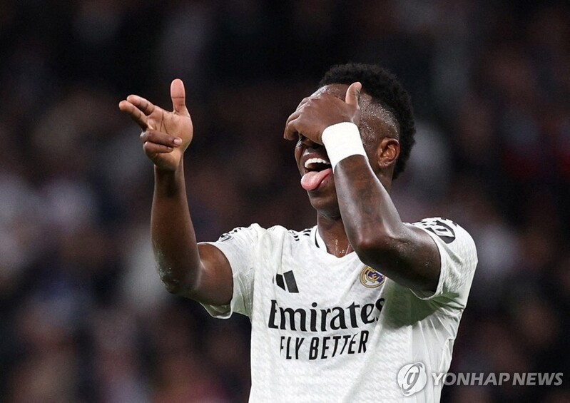 비니시우스 주니오르는 23일(한국시간) 스페인 마드리드의 산티아고 베르나베우에서 열린 RB 잘츠부르크(오스트리아)와의 2024-2025 유럽축구연맹(UEFA) 챔피언스리그 리그 페이즈 7차전에서 멀티골을 터트리며 레알 마드리드의 5-1 대승에 힘을 보탰다.