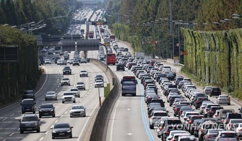 | ▲ Heavy traffic clogs the southbound lanes on the Gyeongbu Expressway, which links Seoul to Busan, in southern Seoul, on Sept. 20, 2021, as many people hit the road ahead of the traditional holiday of Chuseok. (Yonhap) |