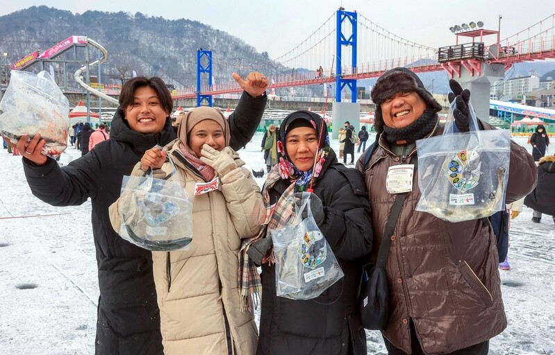 '처음 만난 겨울 만끽'…동남아 관광객 화천산천어축제 방문