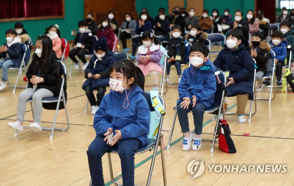 ▲ Students attend an entrance ceremony held at an elementary school in Gwangju, 330 kilometers south of Seoul, on March 2, 2021. (Yonhap)