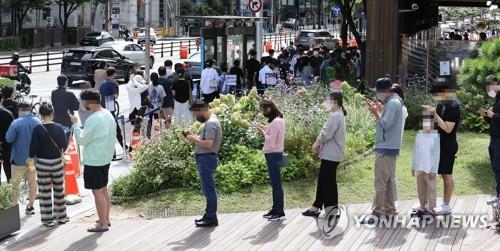 ▲ People wait in line to be tested for COVID-19 at a makeshift testing center in Seoul's Songpa district on Sept. 26, 2021, as the country logged over 1,000 new daily cases for the 82nd consecutive day. (Yonhap)