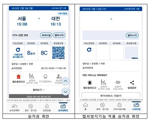 코레일, 암표 거래 예방 위해 스마트폰 승차권 캡처 차단 기능 도입