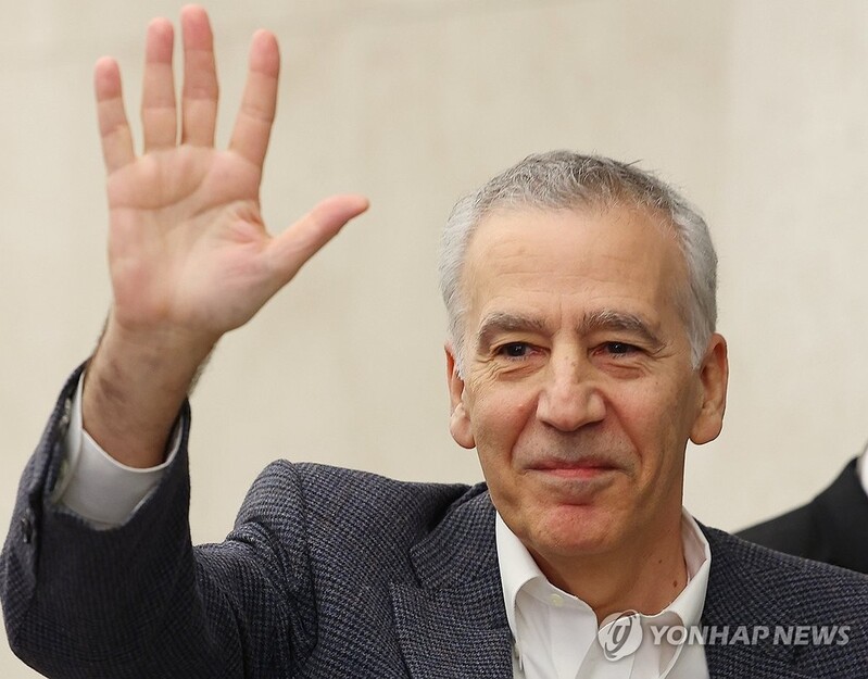 | ▲ This file photo, taken Jan. 7, 2025, shows former U.S. Ambassador to South Korea Philip Goldberg waving after speaking to the press before departing for the United States at Incheon International Airport, west of Seoul. (Yonhap) |