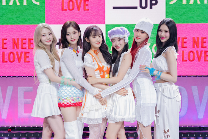 Members of K-pop girl group STAYC pose for a photo during a showcase of their third single album, titled "We Need Love," in Seoul on July 19, 2022, in this photo provided by Highup Entertainment. (PHOTO NOT FOR SALE) (Yonhap)