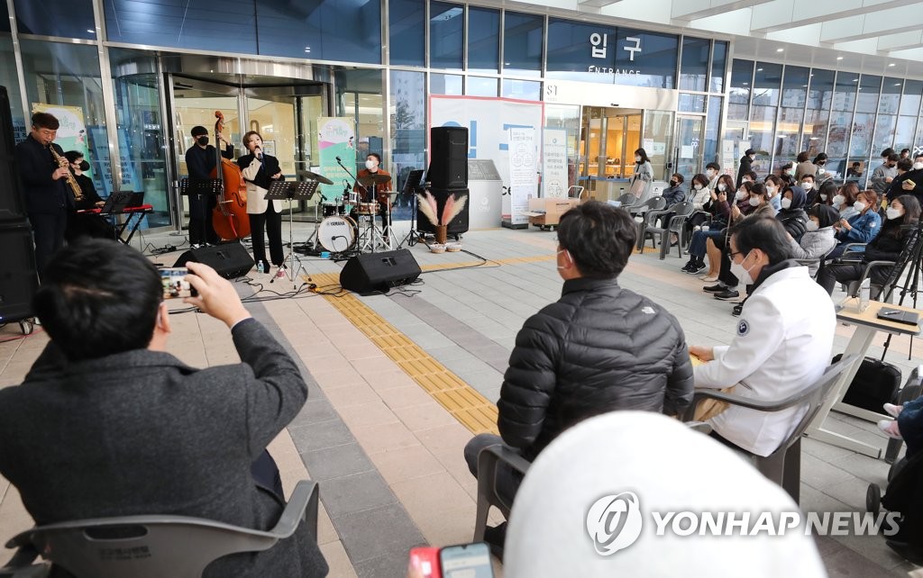 | ▲ People enjoy a classical music performance at Chungnam National University Sejong Hospital in the administrative city of Sejong on Nov. 12, 2021. (Yonhap) |