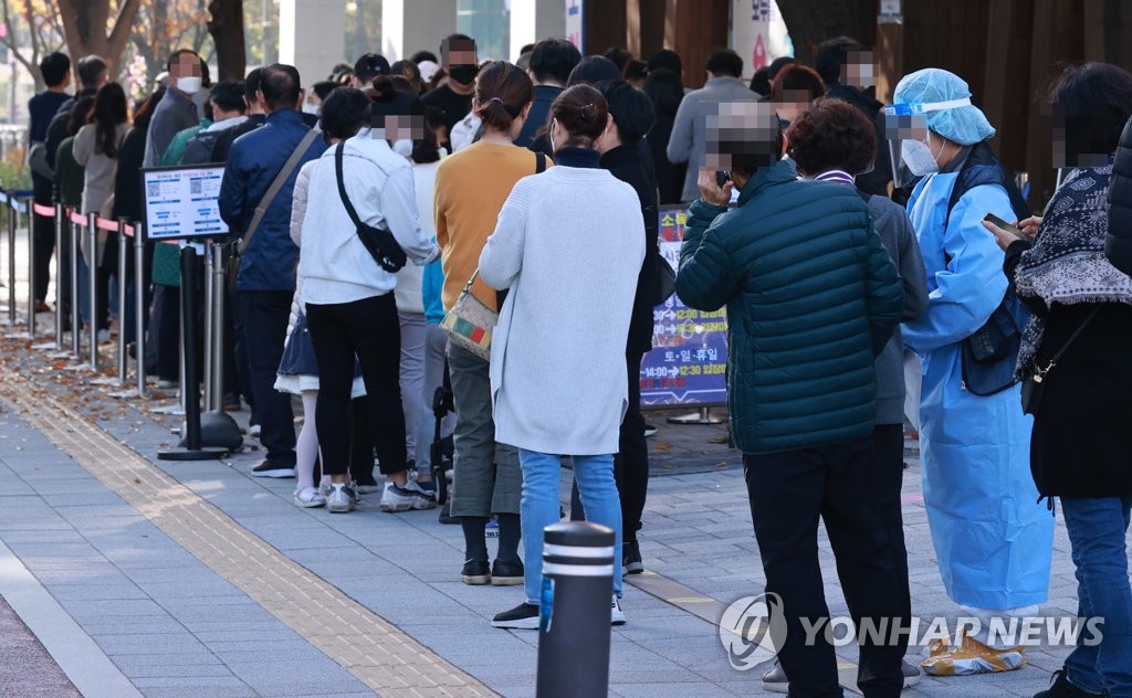 ▲ People stand in line to take coronavirus tests at a COVID-19 test center in Seoul on Nov. 7, 2021. (Yonhap)