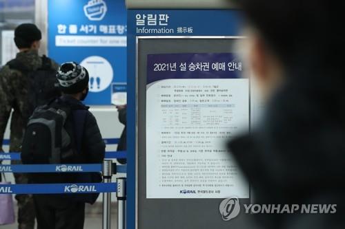 | ▲ A signboard is set up at a train station in Seoul on Jan. 15, 2021, saying tickets for the upcoming Lunar New Year's holiday will only be sold online. (Yonhap) |