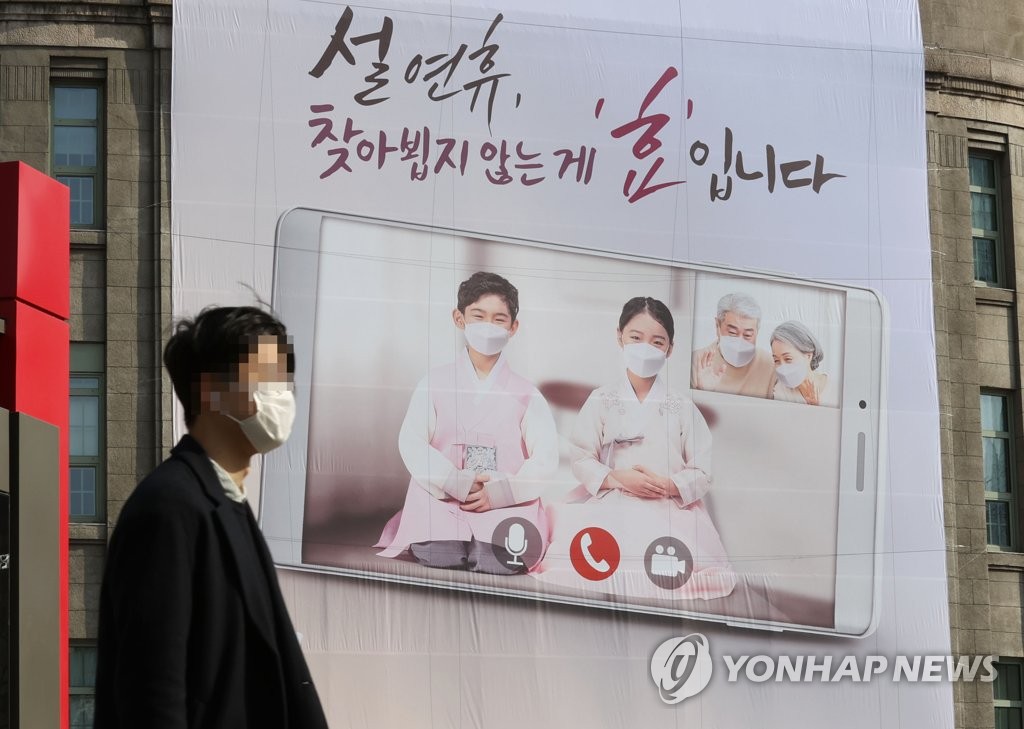 | ▲ This photo, taken Jan. 31, 2021, shows a banner outside Seoul Metropolitan Library in central Seoul that calls for keeping social distancing during the upcoming Lunar New Year holiday. (Yonhap) |