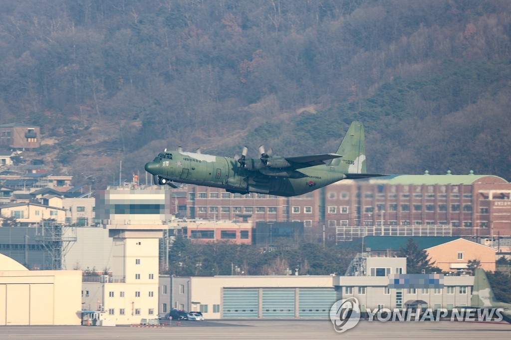 | ▲ A transport aircraft of the Air Force carrying COVID-19 vaccines takes off from Seoul Air Base in Seongnam, south of Seoul, on March 5, 2021, to head to Jeju airport on South Korea's largest island of the same name. (Yonhap) |