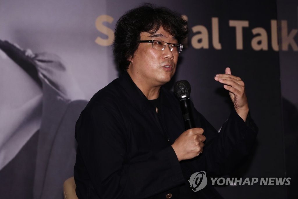 | ▲ 작품 설명하는 봉준호 감독 (부산=연합뉴스) 진연수 기자 = 봉준호 감독이 7일 오후 부산 해운대구 영화의전당 중극장에서 열린 제26회 부산국제영화제(BIFF) 스페셜 대담에서 발언하고 있다. 2021.10.7 jin90@yna.co.kr |
