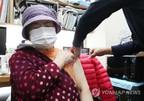 | ▲ A citizen receives a COVID-19 vaccine booster shot at a clinic in Seoul on Oct. 25, 2021, as South Korea began administering such shots for people aged 75 or older nationwide the same day. (Yonhap) |