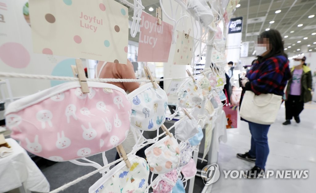 ▲ A visitor to a baby fair held at COEX in southern Seoul looks at baby masks. (Yonhap)