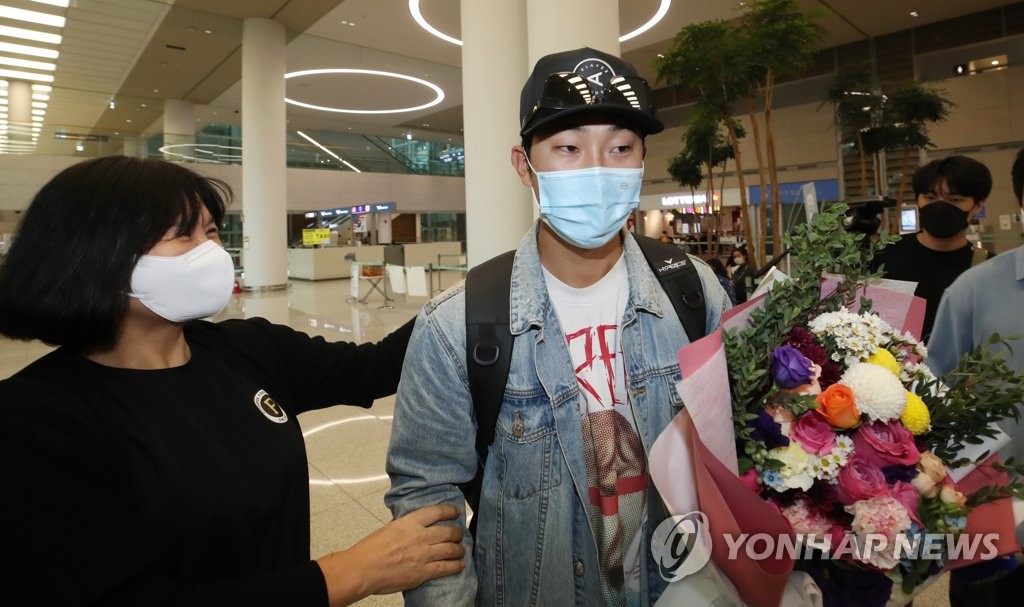 | ▲ 피츠버그 박효준 '금의환향' (영종도=연합뉴스) 임헌정 기자 = 미국 프로야구 메이저리그 피츠버그 파이리츠에서 뛰는 박효준이 6일 오후 영종도 인천국제공항 제2여객터미널을 통해 귀국하고 있다. 2021.10.6 kane@yna.co.kr |