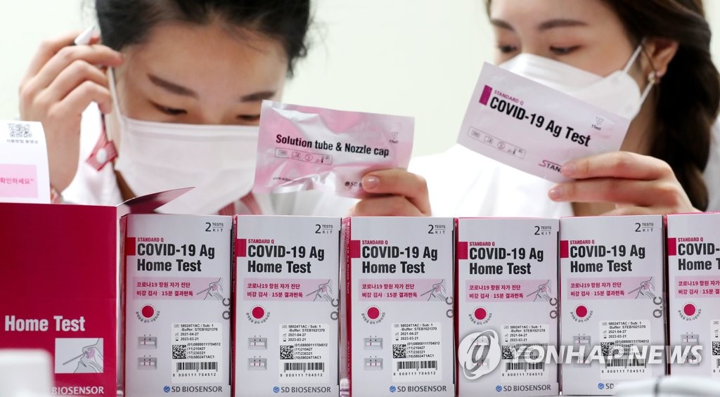 | ▲ Workers inspect home COVID-19 test kit products at a factory in Osong, North Chungcheong Province, on April 29, 2021. (Yonhap) |