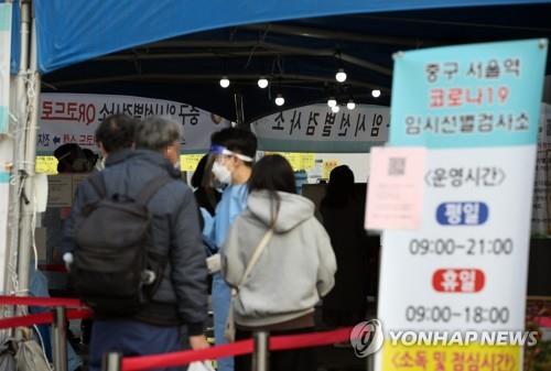 | ▲ People wait in line to take coronavirus tests at a screening center in front of Seoul Station on Nov. 1, 2021, the first day of the "living with COVID-19" measures that South Korea has adopted to phase out coronavirus restrictions and reopen the economy amid rising vaccination levels. (Yonhap) |