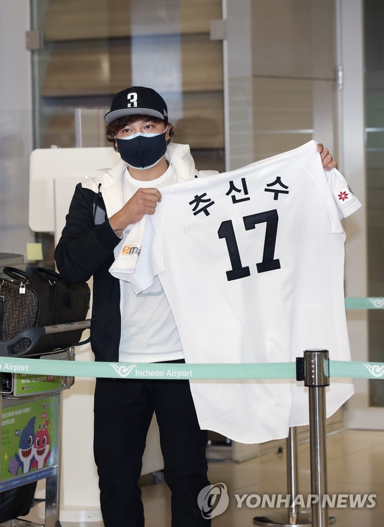 Choo will bring instant credibility to a franchise going in a new direction. The team's CEO, Min Kyung-sam, and its general manager, Ryu Sun-kyu, greeted Choo in person at the airport, and presented him with the temporary jersey bearing logos of the new corporate owner. Ryu said the team brass wanted Choo to be the first player to see the temporary uniform -- which the rest of the team will wear before the new club name and uniform are finalized in late March -- because he's the first acquisition by the club since the ownership change.