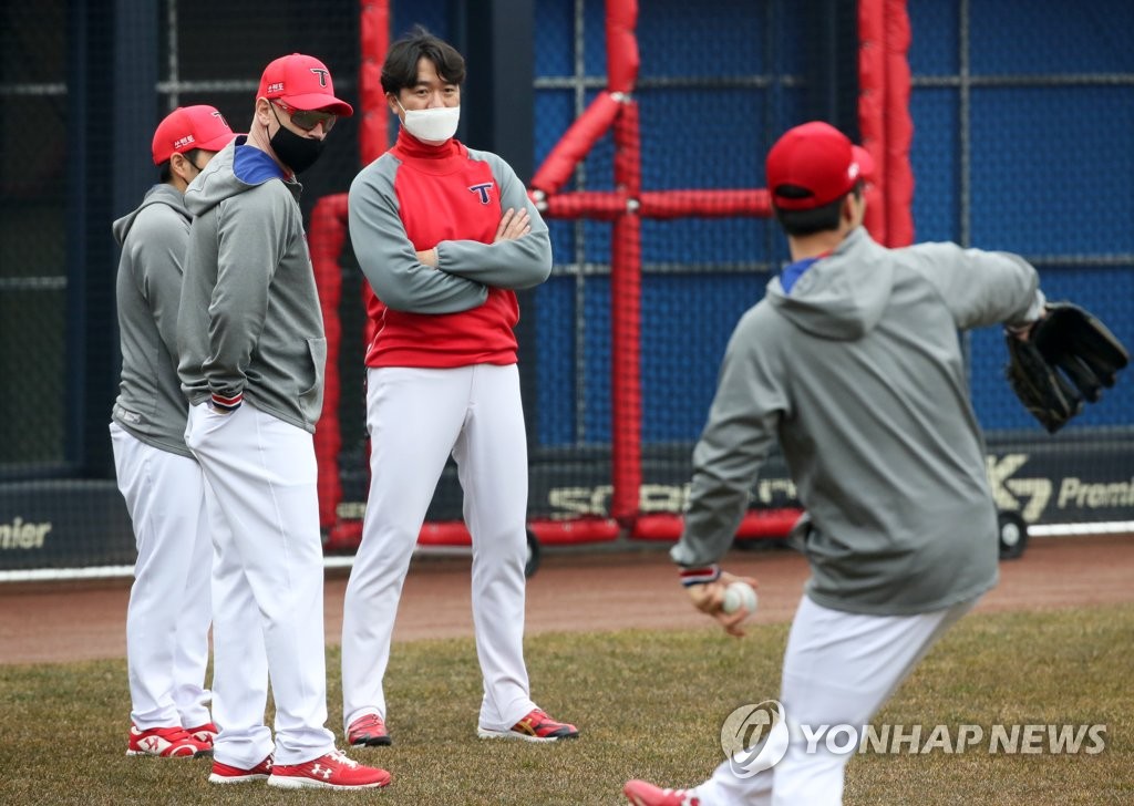 | ▲ Kia Tigers' manager Matt Williams (L) watches his players during spring training at Gwangju-Kia Champions Field in Gwangju, 330 kilometers south of Seoul, on Feb. 1, 2021. (Yonhap) |